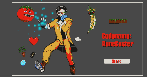 For the presentation and graphics, first I decided to introduce a title screen with drawn elements such as mobile characters, platforms and tokens, and particle effects. These elements together give a visual preview of some of the action elements to be expected during the gameplay. secondly, I used numerous consecutive frames of animation for most of the player and enemy behaviours, that include: idle position, movement in vertical and horizontal positions, jumping, casting a projectile, getting hurt or dying. For this work I used the software Paint.net from the company dotPDN LLC and a digital drawing pad to create the elements in layers. To ease the rotation process of each element I duplicated the files and edited each new frame based on the desired degree of the extension of limbs or body in order to make the movement as fluid as possible and limiting the number of frames as much as possible. Once I had the desired frames for each behaviour, I dragged them to the scene and adjusted the SpriteRenderer components in order to adjust the correct pixel areas of each sprite and using a point filter to avoid blurriness on the edges and textures of the sprite. This process was repeated for every single visual element added to the project including the tile maps, for which I created scriptable tiles with 2-3 frames of animation to add an extra layer of life to the scene and making it more interesting. Examples of tiles that I used are the x-axis flipping grass to simulate movement, the up and down movement of flower tiles and dry vegetation. I included free background elements from the asset store, such as a pixel art trees package that were modified and incorporated into the project to add more forest elements that match with the environment of the first level of the game.